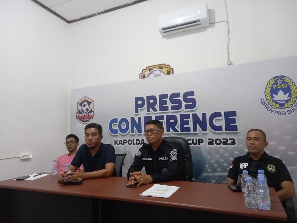 Hal itu diungkapkan Kabidhumas Polda Sulteng melalui Kasubbid Penmas Kompol Sugeng Lestari saat memimpin pelaksanaan Konfrensi Pers persiapan pelaksanaan turnament sepak bola Kapolda Sulteng Cup 2023 didampingi Wakil Ketua Panitia AKBP P. Sembiring, Perwakilan Asprov PSSI Sulteng Rahman Pontoh dan EO Lingkar Media Arman di Base Camp Garda FC Palu, Jumat (27/10/2023).