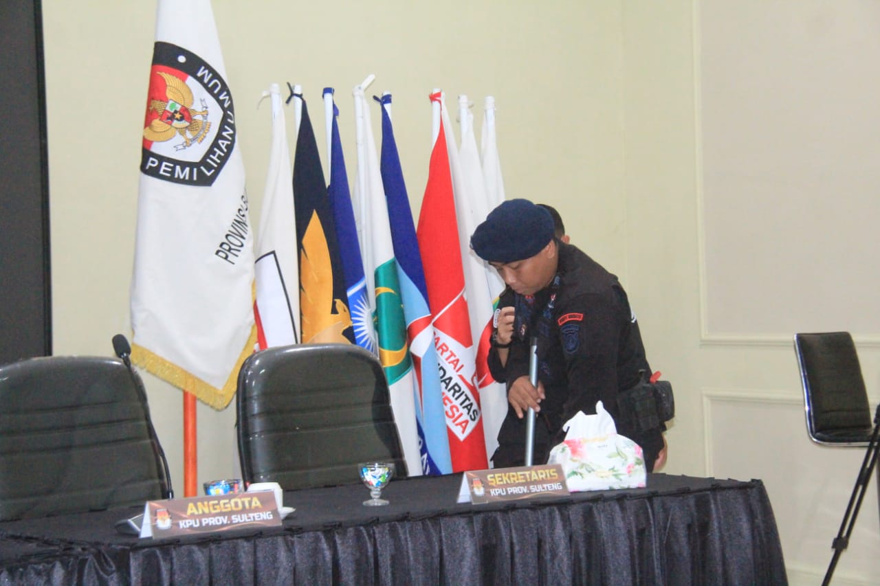Palu Nesia Detasemen Gegana Satuan Polda Sulawesi Tengah () melakukan sterilisasi Sulteng sebelum dilakukan pencermatan dan penetapan hasil rekapitulasi suara Pemilu 2024.