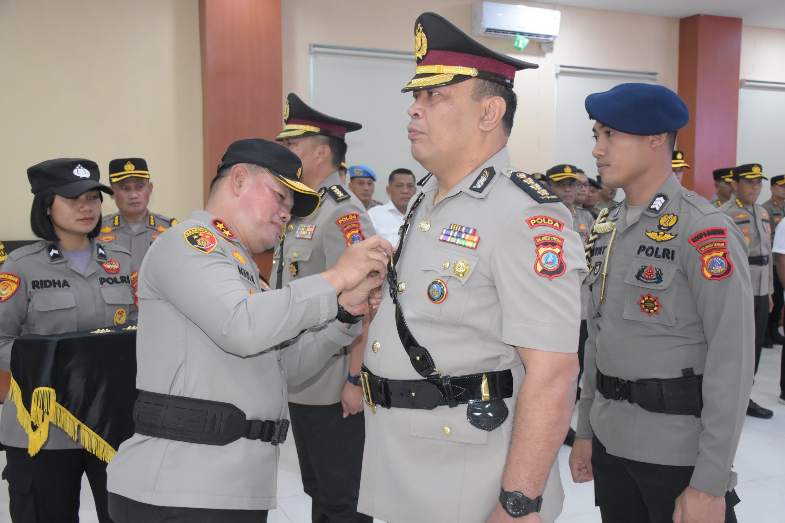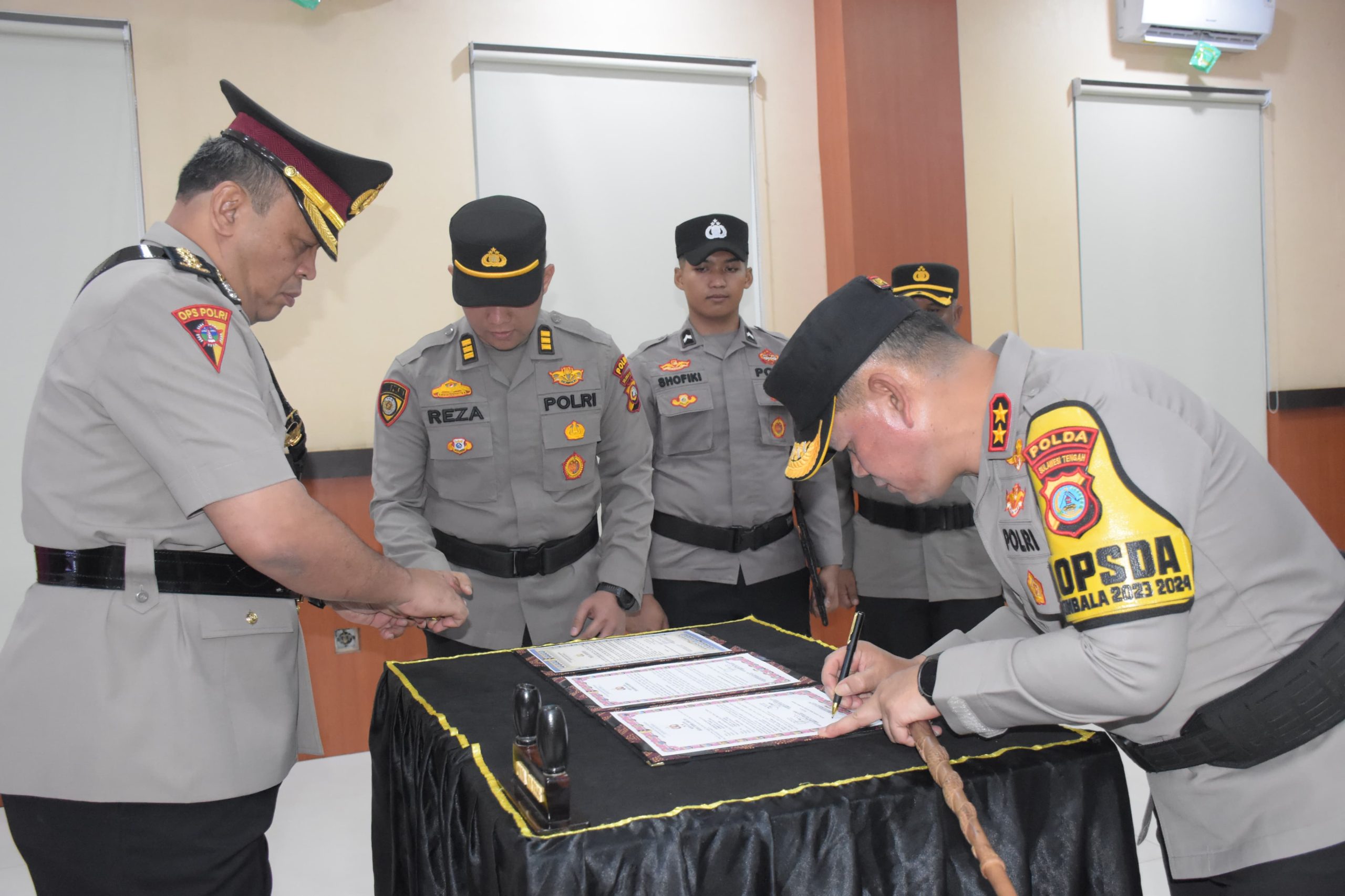 Kombes Pol. Ferdinand Maksi Pasule, S.I.K., menyerahkan tugas dan tanggung jawab jabatan sebagai Karo Ops Polda Sulteng kepada penggantinya Kombes Pol. Giuseppe Reinhard Gultom, S.Sos., S.I.K., M.Han.