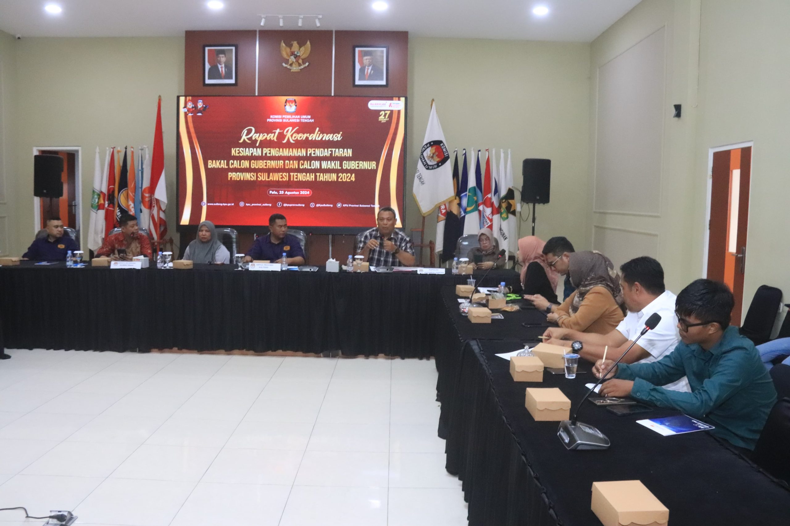 Pelaksanaan Rakor pengamanan tahap pendaftaran turut dihadiri Bawaslu Sulteng, Binda Sulteng, Korem 132/Tadulako, Kesbangpol Sulteng, Dinas Perhubungan dan Satpol PP.