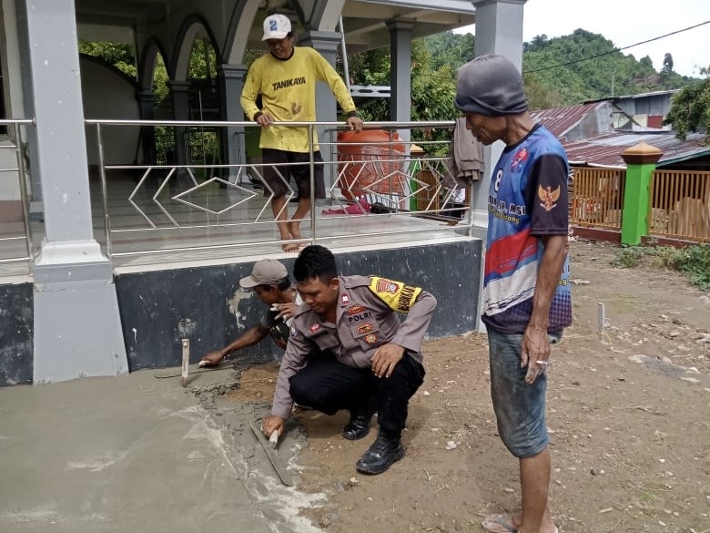 Sinergi Polisi dan Warga Desa Dolago Padang, Gotong Royong Kerja Bakti di Masjid Jabal Ahmad