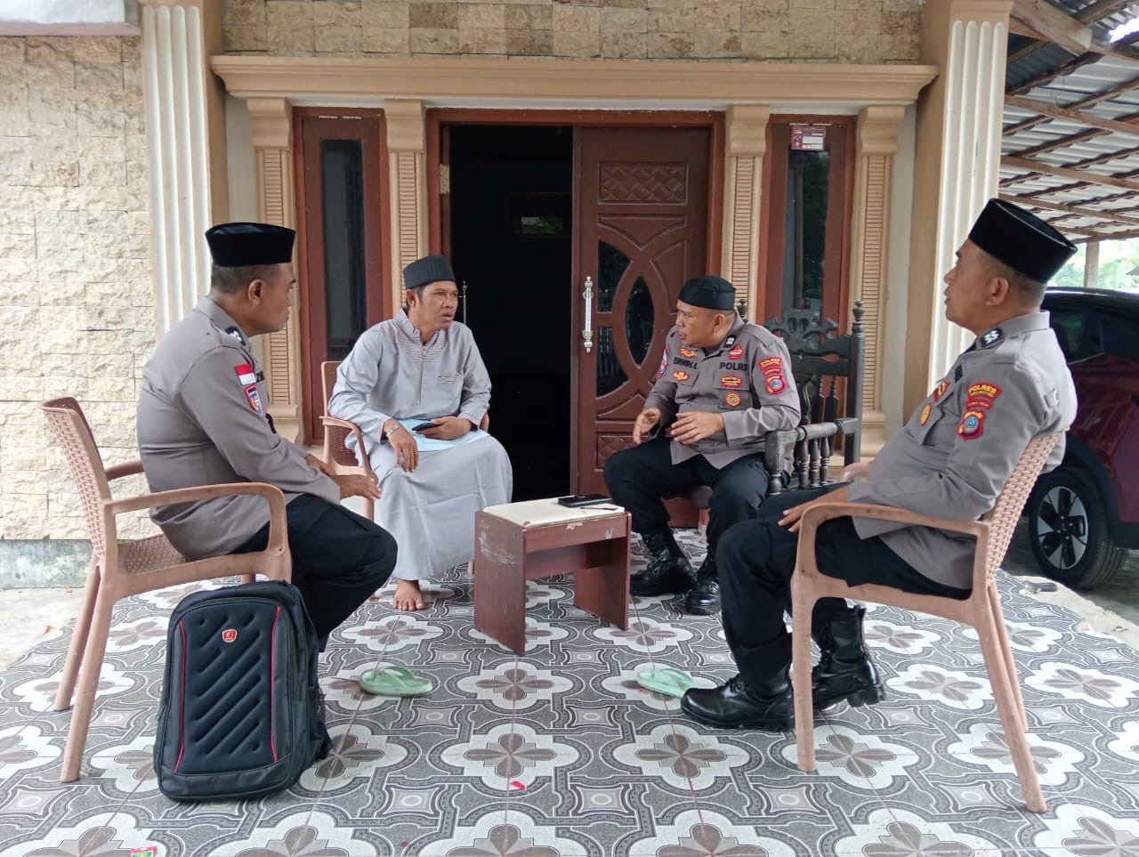 Kegiatan tersebut dihadiri oleh Aiptu Irwan, Aiptu Erwin L., Aiptu Zulham, S.Sos., dan Aiptu Arwin Abubakar bertujuan untuk mempererat hubungan antara aparat dan masyarakat, khususnya dengan tokoh agama, guna menciptakan situasi yang aman dan kondusif menjelang Pemungutan Suara Ulang (PSU) Pemilihan dan yang akan dilaksanakan pada 16 April 2025 mendatang.