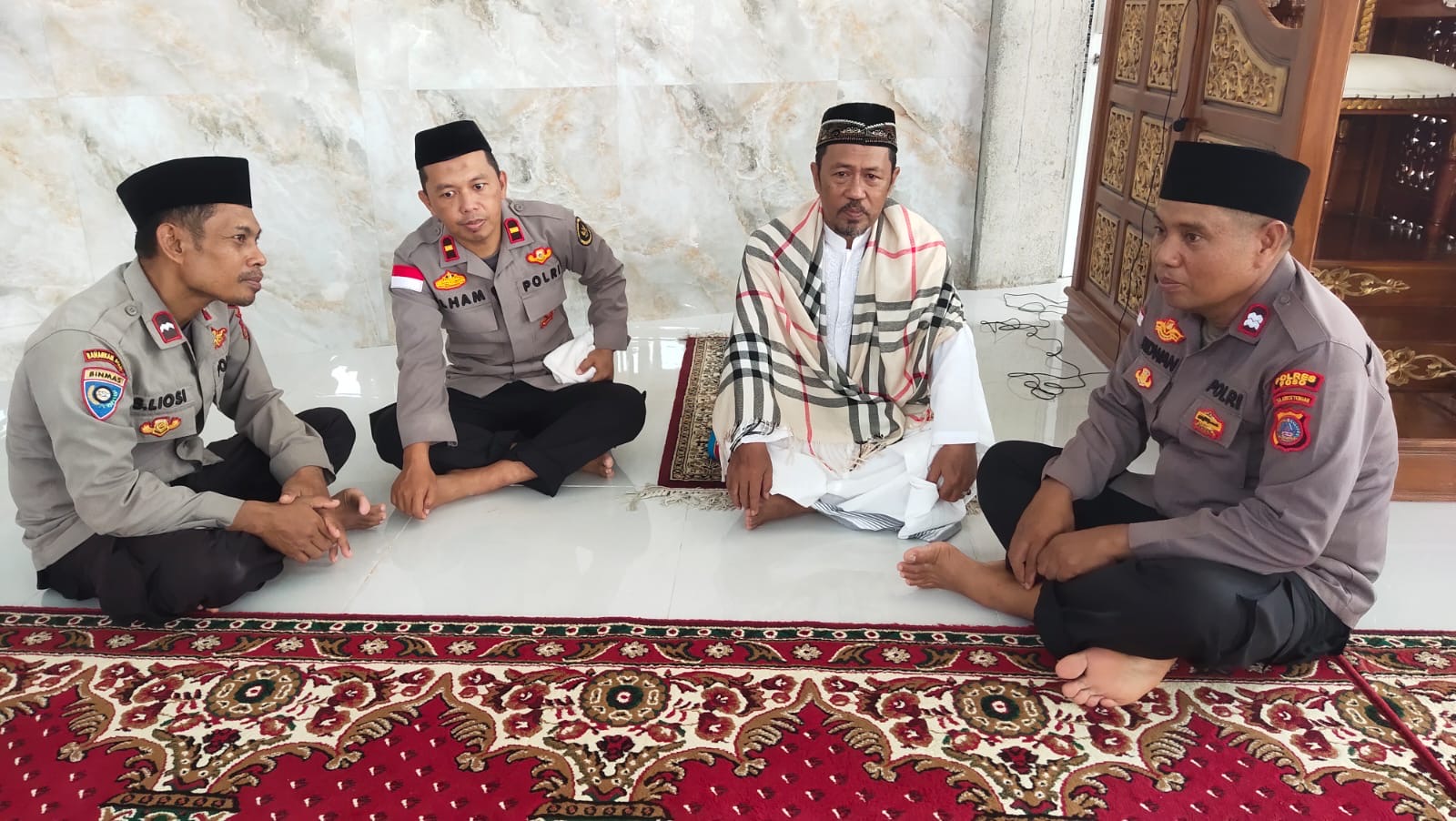 Tiga personel yang terlibat dalam kegiatan tersebut yakni Ipda Ilham Sriwan, Aiptu Ridwan, dan Aipda Sofyan Al Liosi. Mereka mengajak tokoh agama untuk bersama-sama menjaga kondusivitas wilayah yang selama ini telah terpelihara dengan baik.