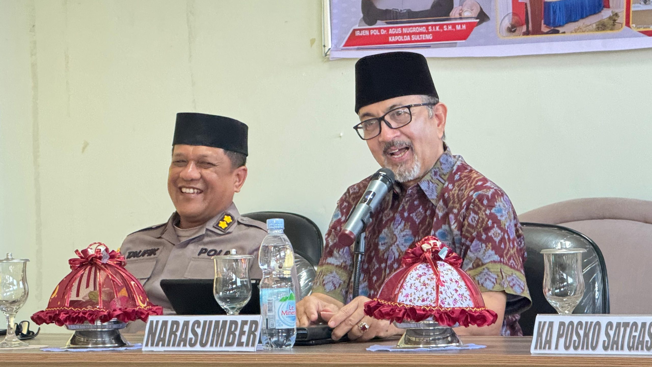 Acara ini menghadirkan narasumber penting, yakni Ketua Forum Kerukunan Umat Beragama (FKUB) Provinsi Sulteng, Prof. Dr. Zainal Abidin, M.Ag, serta Kepala Kantor Kementerian Agama Kab. Sigi, Ustadz Hi. Lutfi Yunus, S.Pi., M.Pd.