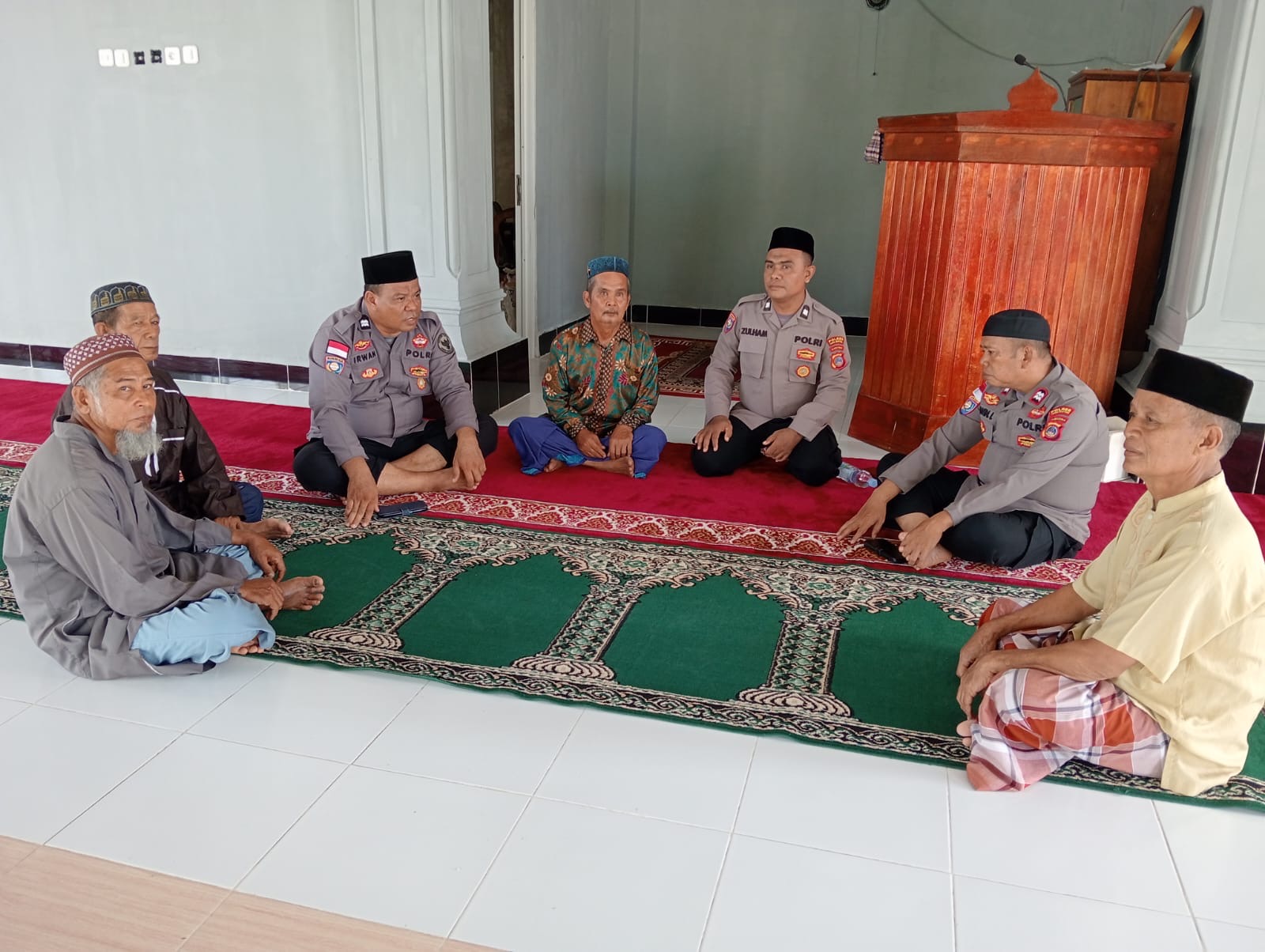 Setelah pelaksanaan sholat berjamaah, tim menyampaikan pesan-pesan secara kepada Imam Masjid Nurul Falah, Ustadz Hi. Marzuki, dan para jamaah. Dalam penyampaiannya, mereka mengajak masyarakat agar ikut berperan aktif dalam menjaga keamanan dan ketertiban di lingkungan sekitar.