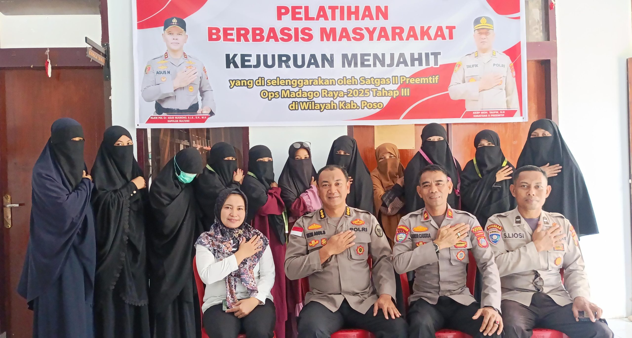 Nesia – Upaya berbasis pendekatan kemanusiaan terus digencarkan Operasi Madago Raya. Pada Rabu (23/7/2025), Kaops Madago Raya Kombes Pol Heni Agus Sunandar, S.I.K., M.H., didampingi Ka Anev Iptu Andi Cakra, meninjau langsung Berbasis Masyarakat Kejuruan Menjahit di Kantor Dinas Tenaga Kerja dan Transmigrasi Kabupaten Poso.