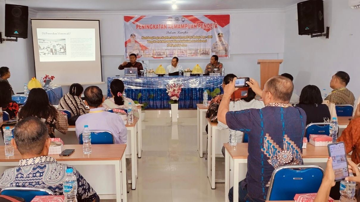 Palu Nesia – Puluhan pendeta dari berbagai gereja di Poso mengikuti pelatihan peningkatan kapasitas yang digelar Satgas II Preemtif Operasi Madago Raya. Kegiatan berlangsung pada Selasa, 8 Juli 2025, di Aula Hotel 99, Jalan Pulau Irian, Kelurahan Gebangrejo, Kecamatan Poso Kota, Kabupaten Poso.