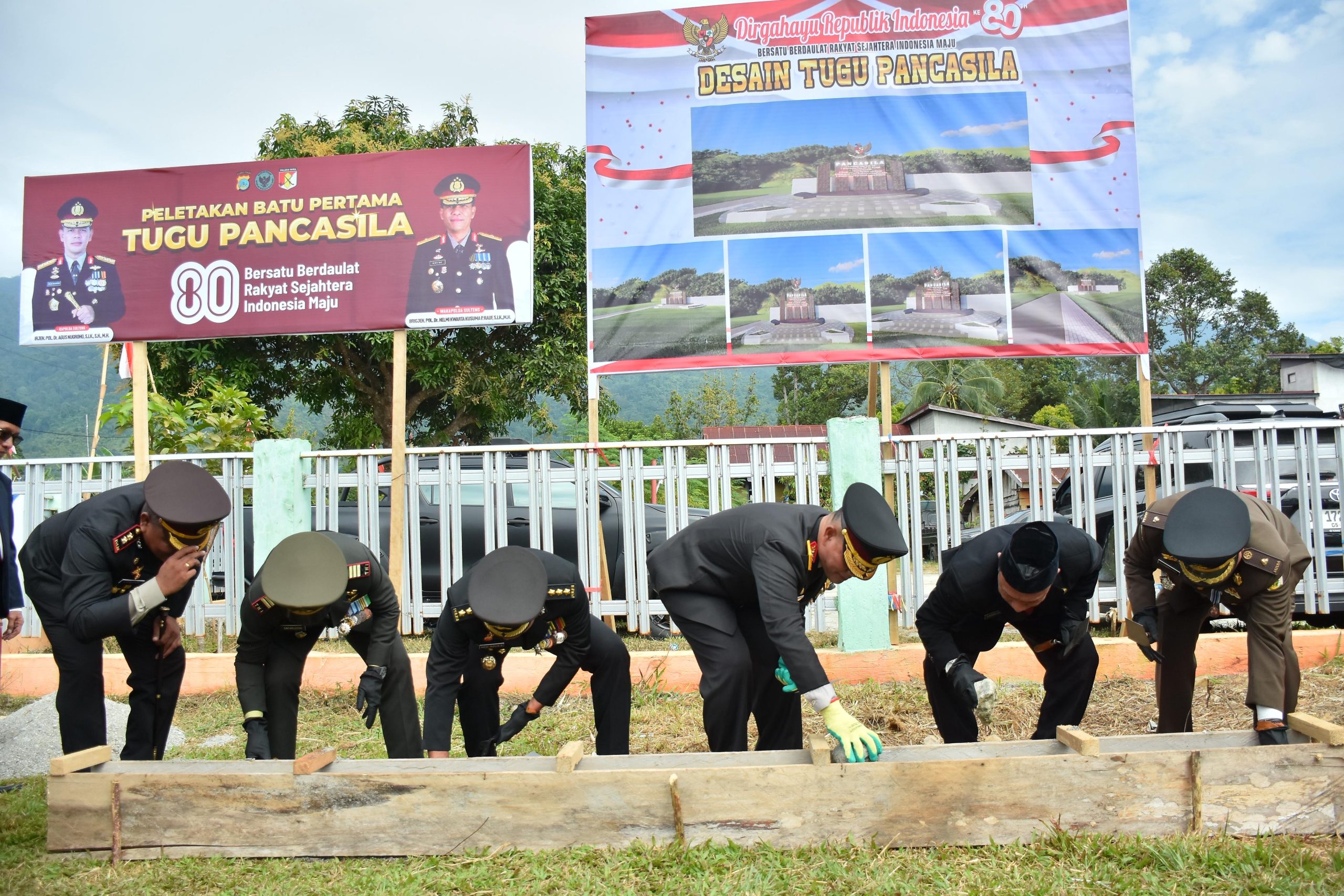 Palu Nesia – Kapolda Sulawesi Tengah Irjen Pol. Dr. Agus Nugroho melakukan peletakan batu pertama pembangunan Tugu Pancasila di Dusun Tamanjeka, Desa Masani, Kabupaten Poso. Kegiatan ini digelar usai pelaksanaan upacara detik-detik proklamasi HUT ke-80 Republik Indonesia, pada Minggu (17/8/2025).