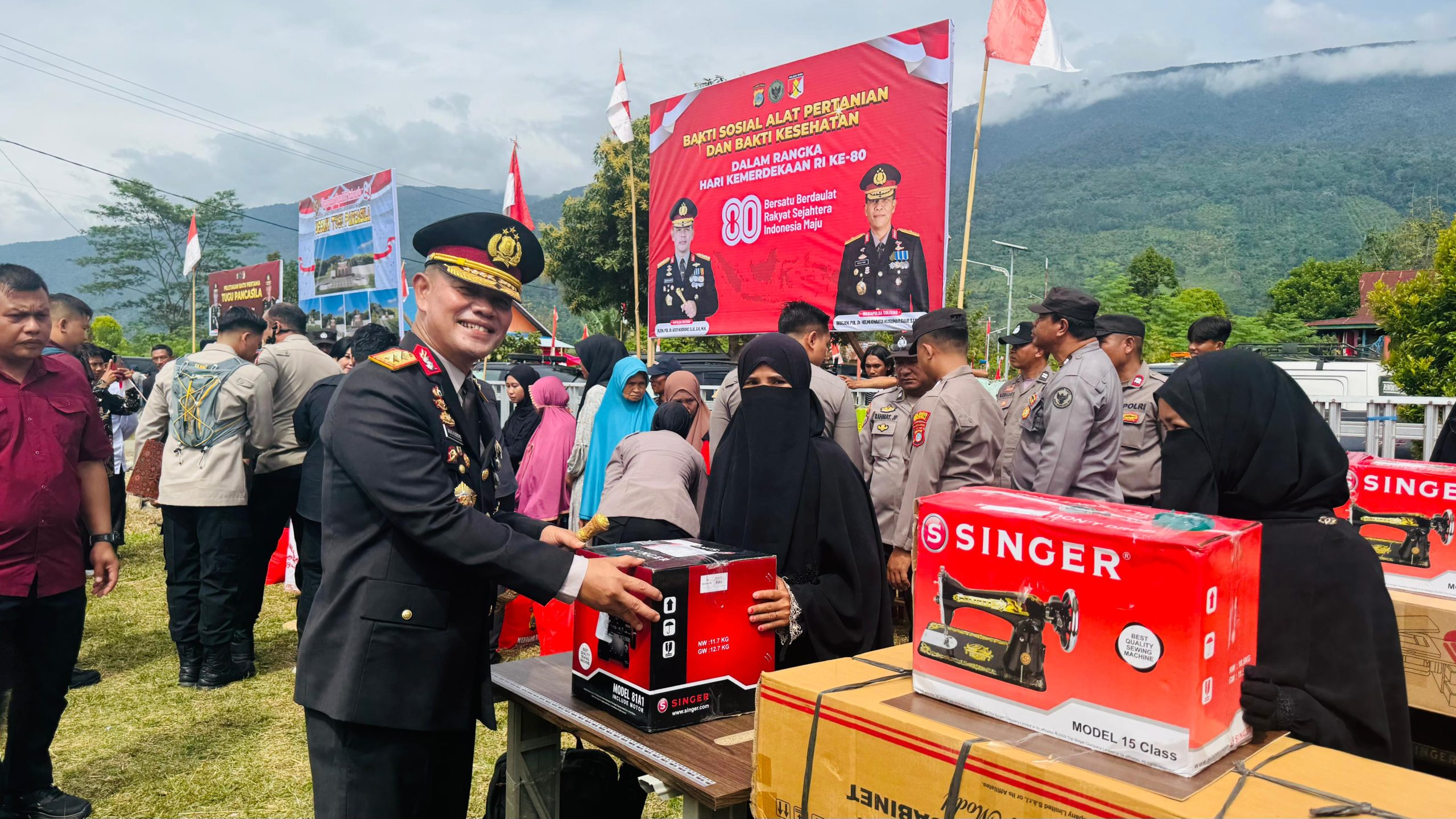 Dalam kesempatan tersebut, Kapolda Sulteng memberikan delapan unit mesin jahit kepada mantan eks napiter. Selain itu, tiga puluh lima paket sembako juga disalurkan untuk masyarakat sekitar. Bantuan ini merupakan bagian dari rangkaian kegiatan sosial dalam momentum peringatan kemerdekaan Republik Indonesia ke-80 RI.