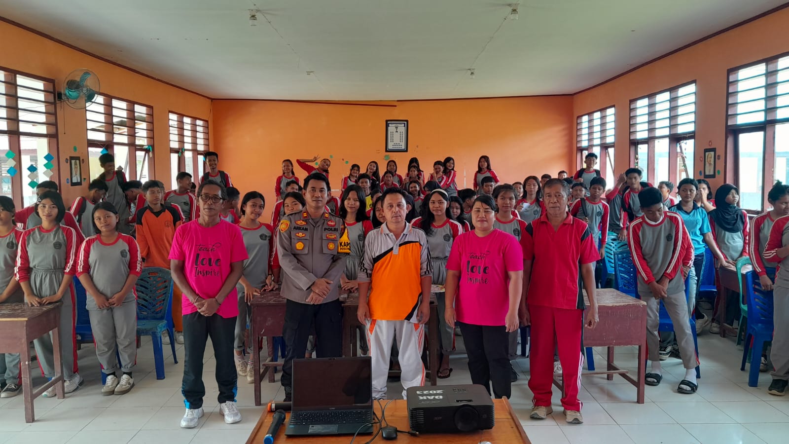 II Preemtif Ops Madago Raya melalui Kapolsek Poso Pesisir Selatan, Iptu Arkam AR, memberikan edukasi tentang bahaya dan menanamkan jiwa cinta tanah air kepada para SMP Negeri 1 Poso Pesisir Selatan pada Jumat (14/11/).