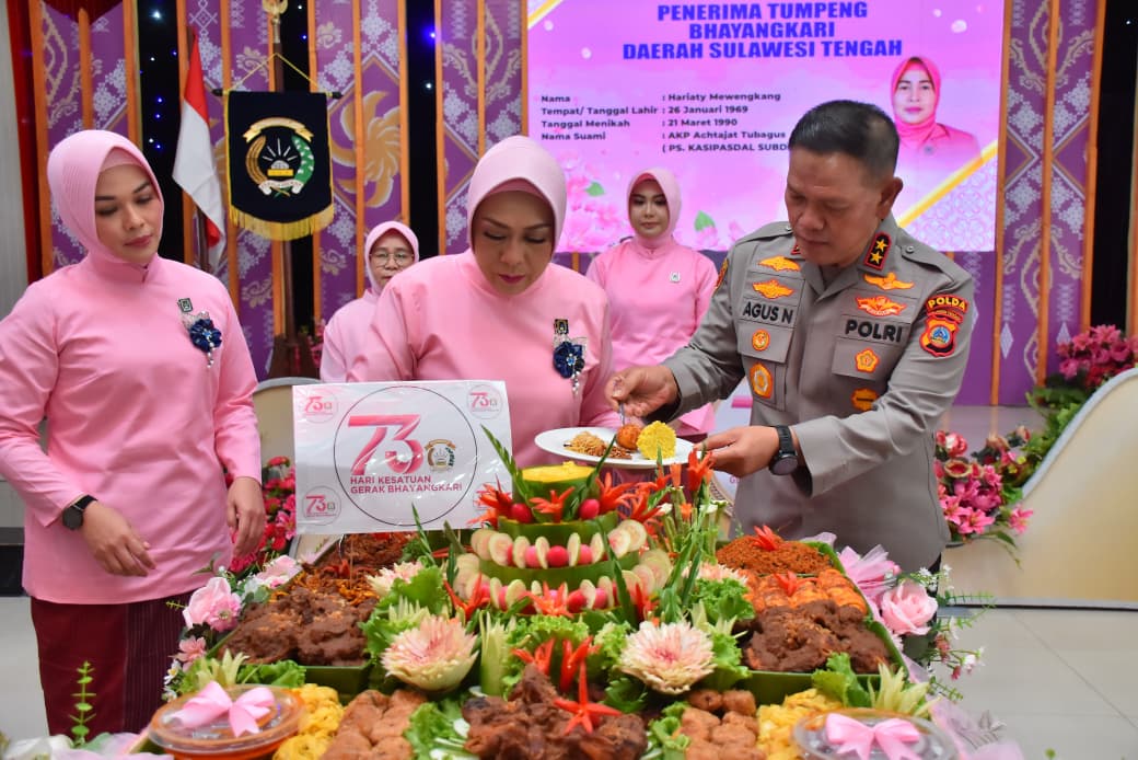 PALU NESIA – Kepala Kepolisian Daerah (Kapolda) Sulawesi Tengah, Irjen Pol Dr. Agus Nugroho menghadiri acara syukuran Hari Kesatuan Gerak Bhayangkari (HKGB) ke-73 yang digelar di Aula Torabelo Polresta Palu, Kamis (23/10/2025).
