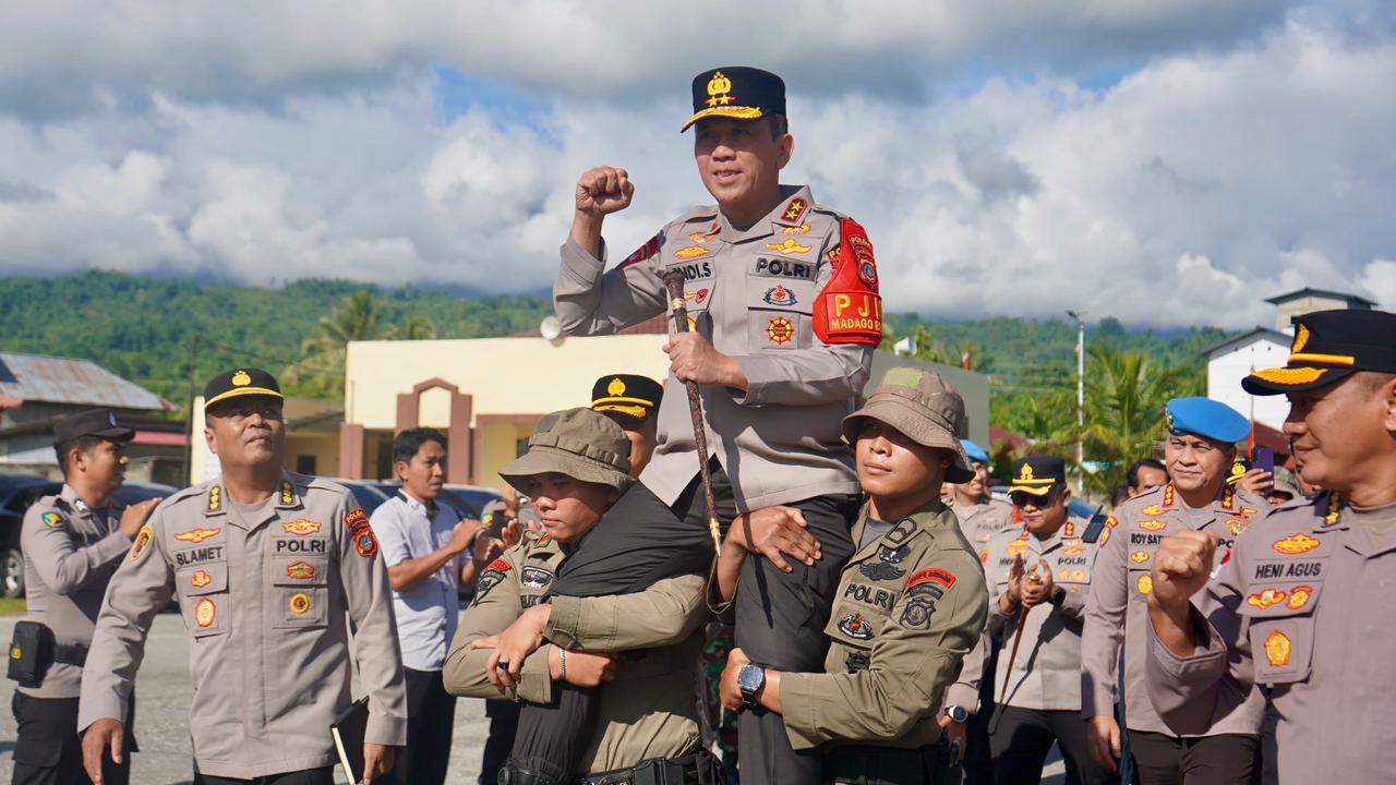 PALU NESIA – Sulawesi Tengah Irjen Pol Dr Endi Sutendi meninjau Pos Komando Taktis (Poskotis) Tokorondo di Kabupaten , Kamis (11/12/2025). Kedatangannya sebagai Penanggung Jawab Kebijakan (PJKO) Ops Madago Raya disambut jajar hormat yang berdiri rapi di halaman pos. Suasana penyambutan makin hidup dengan lantunan yel-yel semangat dari seluruh personel.