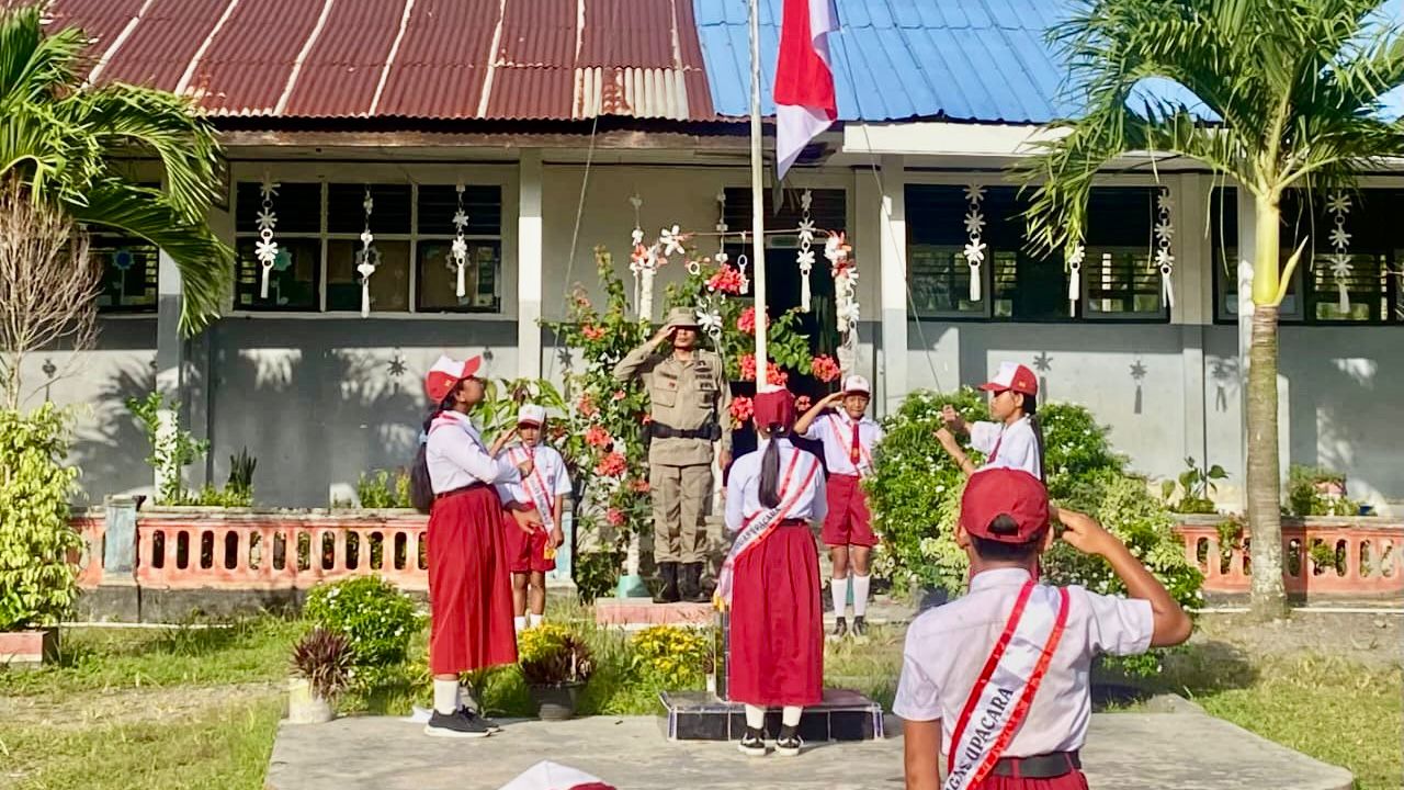 PALU NESIA – Personel Satgas III Preventif Operasi Madago Raya melaksanakan upacara bendera di dua sekolah dasar di wilayah Kabupaten Poso, Senin (15/12/2025). Kegiatan tersebut berlangsung di SDN 2 Tumora, Kecamatan Poso Pesisir Utara, dan SDN Ratalemba Tamanjeka, Kecamatan Poso Pesisir.