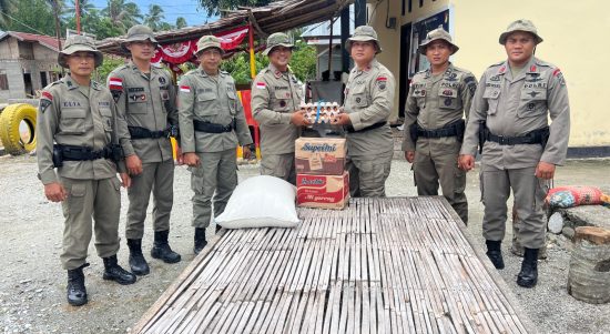 Bentuk Kepedulian, Dansat Brimob Polda Sulteng Bagikan Bingkisan Sembako ke 4 Pos Kamtibmas