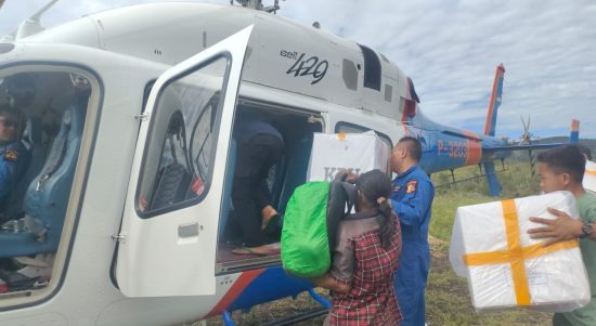 Polda Sulteng Terjunkan Helikopter Jemput Logistik Pemilu di Wilayah Terpencil Morut