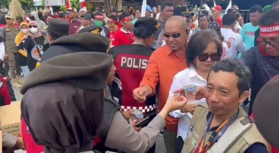 Peran Humanis Polwan Polda Sulteng di Tengah Kerumunan Pendukung Paslon Gubernur