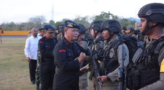 Palu Nesia – Kapolda Sulawesi Tengah (Sulteng) Irjen. Pol. Dr. Agus Nugroho, S.I.K., S.H., M.H. memimpin langsung Apel pemberangkatan 110 Personel Satbrimob