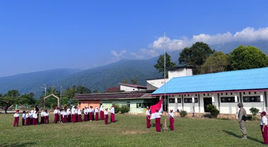 Upacara Bareng Brimob, Siswa SDN Ratalemba Poso Dapat Edukasi Cinta Tanah Air