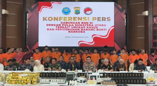 Palu Nesia – Badan Narkotika Nasional Republik Indonesia (BNN RI) bersama Kepolisian Daerah Sumatera Utara (Polda Sumut) mengumumkan pengungkapan besar kasus narkotika